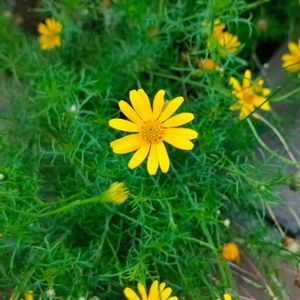 おはようございます。 今日の花と言いたい所ですが、ダールベルグデージーが歯医者さんの前に咲いていました😃 黄色い花繋がりで ②雨に濡れたヘレニュウムダコタゴールド ③冬瓜の花と実を初めて見ました。民家の壁を覆う様に😳