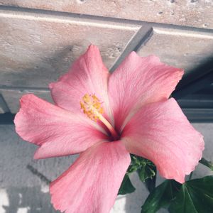 息子の部屋で日差しを浴びて冬越え後、ベランダに出たハイビスカス🌺次々蕾が❣️ この春2つめの開花💓優しいピンク。風強くて花びら反ってるような。。一階の半日陰に引っ越しかなぁ。。。