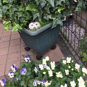 だいぶ伸びてきたなぁ🍀 ほのぼのビオラさんにもう少しの間、男だらけの我が家の玄関を和ませてもらおっ😌🍵半日陰で頑張ってくれてありがとう❣️