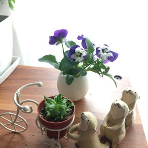 玄関を彩ってくれたビオラさんが伸びてきたから…リビングで癒してもらうことにしました😌💜💚小さいけど癒やし効果絶大🍀✨
