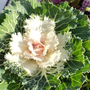 寄せ植えの葉牡丹 ①フリンジ咲き🤍🩷💚 ②フリンジ咲き💗💚