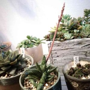 昨日、実家の帰り🚲💨 先に帰った主人が… 小さなお花屋さんの隅っこに多肉植物が珍しくちょっとだけあったよ⤴️ 『お気に入りと出逢えるかもよ‼️』っていってくれたので覗いて👀✨…結局➰😅お迎えしたのですが……。 店主も『品種までは。 。。。』って😅💦💦 多肉植物🌱 初心者🔰なので教えて下さい🙋⤴️