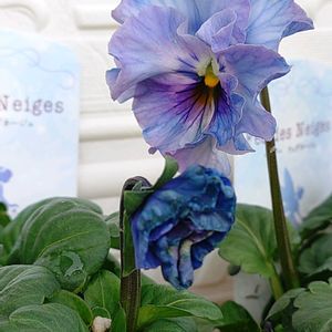 おはようございます😃 温かい日が続くので、パンジーたち の色味が変わってきました。写真はフェデネージュブルーです。 どちらも大好きな色味です🩵💜 暑さに負けずGWくらいまで頑張ってほしいです🌸