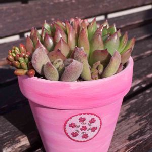 おはょーう❀.(*´▽`*)❀. 先週の土曜日に植えたリメ鉢寄せ植え🎵 横からの図🤳