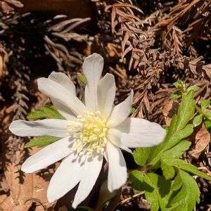 午後に晴れたので、開いてくれてました♪ キクザキイチゲ(菊咲一華) キンポウゲ科 イチリンソウ属 多年草 北海道、本州(近畿以北)に分布。 落葉樹林内に生育。 茎は直立。茎葉が3個輪生する。 葉は3出複葉。小葉が深裂する。 花は茎頂に1個。花弁に見えるのは萼片。 萼片は淡青紫〜白色。長楕円形で8〜13個つく。 花期3〜5月 ⑤は虹の沢の雰囲気を少し。 3月23日撮影 福島県南部 虹の沢