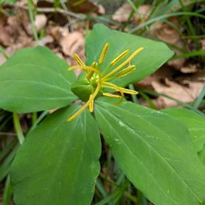 ちょっと変わったツクバネソウを見つけました♪ ツクバネソウ(衝羽根草) シュロソウ科 ツクバネソウ属 多年草 和名は4個の輪生葉が羽根突きの羽根を連想させることから。 北海道、本州、四国、九州に分布。 山地の林内に生育。 葉は4個輪生し、長さ4〜10cmの長楕円形、無毛、全縁、先が尖り無柄。 長さ5〜10cmの花序柄を直立し、緑色の花をつける。花被片は4個、長さ1〜2cm、緑色。 黄色の雄しべが8個。雌しべの花柱は4分岐。 液果は球形で約1cm。秋に黒く熟す。 花期5〜8月 ③は花茎が2本出て、花も2個、輪生する葉も8枚ありました。 ④は全体。茎も他の茎より太いです。 これも帯化現象なのかしら? 5月5日撮影 福島県 南部
