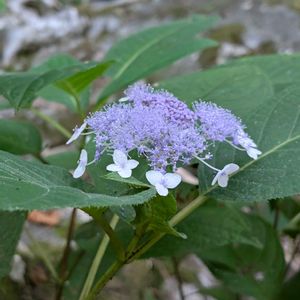まだ蕾もたくさんありました♪ タマアジサイ(玉紫陽花) アジサイ科 アジサイ属 落葉低木 別名 ヤマタバコ 蕾が玉のように丸いので、玉紫陽花の名がついた。 本州(東北地方の南部の福島県・関東地方・中部地方)、伊豆諸島、トカラ列島に分布 山地の林内、丘陵の谷間に生育。 高さ1〜2m。 葉柄は1〜9cm。葉身は長円形〜倒卵形、長さ10〜25cm幅4〜12cm、基部は円形、縁に牙歯状の細鋸歯がある。先はとがる。両面に短毛。 枝先に球形の蕾をつける。蕾が開くと、包んでいた苞が落ち、散房花序状の集散花序が開き、花序は10〜15cm。花序の周辺に装飾花をつけ、花弁状萼片は3〜5個、白色〜帯紫白色。花序の中央部に淡紫色の両性花を多数つける。 花弁は5個、早落生。雄しべは10本。 蒴果は直径約3㎜の球形、2個の花柱が角のように宿存する。 花期(6〜)7〜9月 8月30日撮影 福島県南部