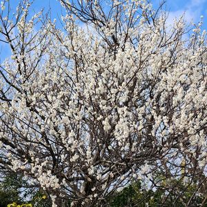 青空になったので庭に出ました 梅が満開でした😄 庭でお花見🌸☕️🌸