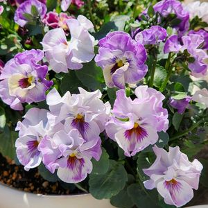 こんにちは☀️ ビオラのフェアリーフェネック 寒さで枯れかけたのでサンルームに移した手前のロータスコットンキャンディ