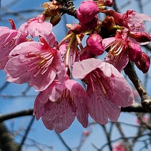 こんにちは🌥 10年前に伊豆の河津桜を見に行った時に苗木を2本買って家の前と後ろに植えました🌸🌸 今では大きな木になって花が咲きます🌸🌸