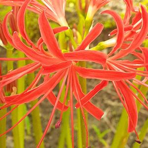 ヒガンバナ 黄色いヒガンバナを買ったのに今朝開花したのはどう見ても赤い これから黄色に変化するの? まさかね…