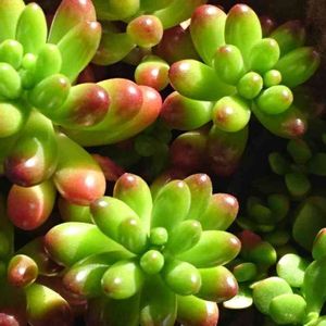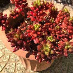 ■Sedum セダム ・Rubrotinctum 虹の玉 (奥) 春夏秋冬屋外放置雨ざらし 夏も遮光なし直射日光浴 (手前) 春夏秋冬屋外放置 屋根のある場所 2つの鉢は同じ量の虹の玉がありました 奥のは夏に減りました 雨ざらしで蒸れて減りました でも紅葉は素晴らしいです✌ そろそろ、カットして挿すカットして挿すの時期がやって参ります(^-^ゞ