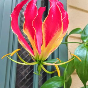 ウチのお庭のグロリオサ 綺麗に咲いています。 というかこれって アニメ『鬼滅の刃』の煉獄杏寿郎 そのものですよね~🤩❗ もしかしてグロリオサがモデル⁉️ 煉獄さんカッコいい❤️❤️