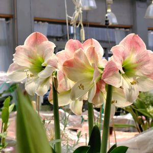 🌿 アマリリス 🌿 1️⃣2️⃣花友くまさんに花テラスに連れて行ってもらいました🩷キレイなお花がたくさん咲いてました😊 3️⃣4️⃣5️⃣鉢植えのフリージアが室内に甘い香りで満たしていました🩷🤍🧡🌿