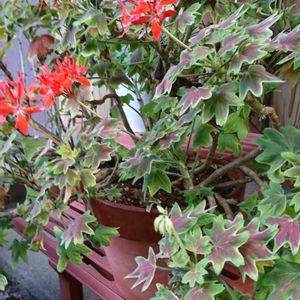 おはようございます😄… 玄関周りに お迎えしてる もみじ葉ゼラニウムさんです😉… この子は3年目で10号鉢ですが 夏の暑さで少し元気をなくしてますが 昨年の夏よりは かなり元気で嬉しいです😋💕… 涼しくなったら またモリモリになってねって思ってます…🤤
