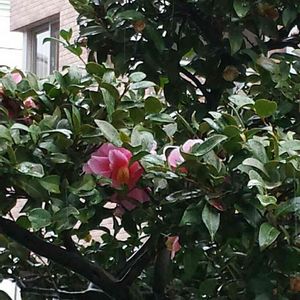 母の愛する実家の椿✨ あいにくの雨で、花がボタボタ落ちてしまってた…😓