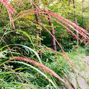 日陰のススキは穂が赤くて、紅葉してるようです。