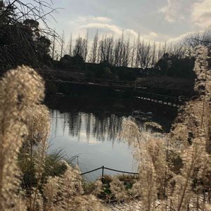 《この幻想的な風景》デンパークにあるハス池🤗🌸 今は冬枯れの風景だ。 手前のススキが枯れて立ち枯れ状態になっている🤗 なんだかとっても幻想的でいい感じだ🤗