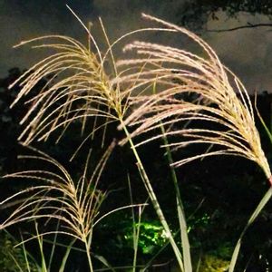 今日の帰り道 雨があがったので 歩いて歩いて 気にしていたススキに ちょっと暗くなって いい雰囲気 模様入りの葉が気に入っています。