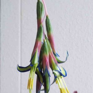 ヨウラクツツアナナス(ビルベルギア・ヌタンス)が開花しました。不思議な花!
