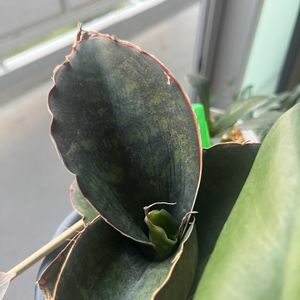 こんばんは〜😊 今日は何も無いのんびりの1日(❁´ω`❁) 好きな時間まで寝ていられる、子供がいた時には想像も出来ない幸せな1日です〜🛌🏝💤💤 サンセベリア ドラゴンウィング❣️ やっと次の葉が中から出てきました。 幅広い肉厚の葉っぱは模様がとても美しく、赤と枯色のフリフリの縁どりが綺麗です( ˘͈ ᵕ ˘͈♡)