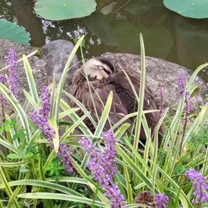 〜 🏃中のお花たち④ 〜 多摩湖自転車歩行者道にはたくさんの公園が隣接してるのですが、小平市のあじさい公園という公園では、池の畔のヤブランの陰でカルガモちゃんがお昼寝してました🥳 ここのカルガモちゃんは今年も4羽のヒナ🐤を産んだそうです😱 この光景にとても癒やされました🤗