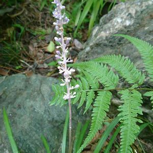 ヤブラン(オキナ)が咲いた 夏になって 葉の曙斑が消えて緑葉に なったけど 薄紫色の花が優しげね 石蕗は新葉を出し旺盛だ♪