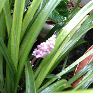 ヤブラン 細い葉の中から 細身の花をよく見ると 小粒のツボミが開いて 可愛いらしいです