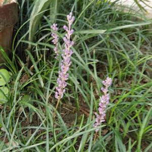 お散歩中🚶♀️ やっとヤブランの花を見れました🌸 調べてみたらヤブランの根を漢方薬に配剤するそうで、麦門冬と呼んでいる。 えーっ昔🤨咳が止まらず麦門冬呑んでました💦 そんな効能がある植物だったなんて意外でした😮