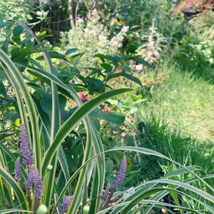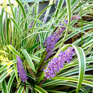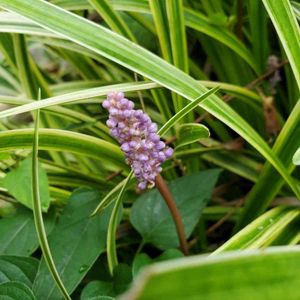お友達から、斑入りのヤブラン💜花付きで、頂きました! ルリ色の実が付くのが楽しみです,💙