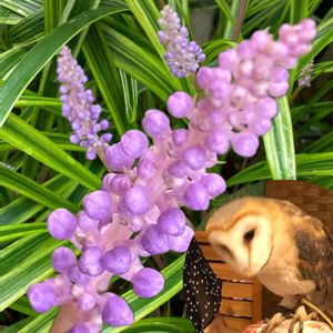 こんにちは🙋♀️ なんて暑いの😩 32度あります💦 熱中症🥵にご注意を⚠️ GSに来て4回目のお披露目かな? 💜ヤブランの花💜 毎年忘れずにこの季節になれば咲いてくれる🎶 春先の新芽が出てくる前に、株元からばっさりと古い部分を刈り取っています✂️ 開花は8月から10月頃まで✌️ 「忍耐」と言う花言葉がピッタリ 40年 変わらない姿💜 今年も咲いてくれてありがとう🙋♀️ 今日は29日 🏷フクロウ祭 参加させてね🙋♀️ フクロウカフェにて腕に🦉 エサやりも経験しました✌️