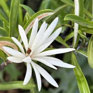 淡いグリーンの 円柱形の雄花 イチョウの様に 雌雄異株なので 雌株に花粉が飛んで行かないと 実を見る事ができません。 🔴と🟢が連なった 変わった実を付けますが 我が家の雌株は 昨年 枯れました😅 マキノ木 別名イヌマキ、クサマキ、ホンマキ
