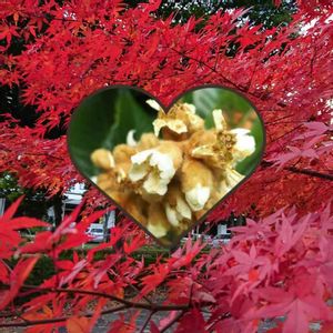 🍃🌧️台風と大雨の被害の お見舞いを申し上げます。😐 🌿今日の お花の、ビワの花と 🍂🍁もみじの紅葉