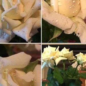 雨が降り出してきて、最初に花開いてたヨハネパウロ2世さんが、倒れそうになってたので、あと2つのお花と一緒に玄関先に✂️して飾りました^_^♡♡♡ 雨雫に当たって真珠のようです^_^♡♡、