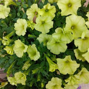 おはようございます☔😃 今日のお花 ✿ペチュニアライムグリーン ෆ花言葉[心のやすらぎ] 🍀週の始まり宜しく お願いします🙇