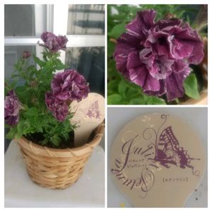おはようございます 3年連続のお迎えです 冬越しはできませんが、毎年晩秋迄お花を楽しませてくれます 薄紫に白の縁取りのお花 株姿もコンモリなるのがお気に入りです 八重咲きベチュニア 花衣シリーズ 瑠璃静(るりしずか) ベランダ スモール園芸 5号鉢