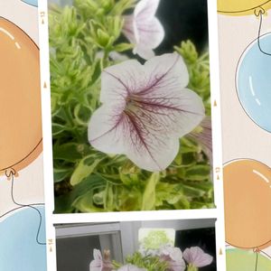おはようございます 斑入り ペチュニア ファンタスティック ホワイト 斑入りの葉っぱがお花を引き立てています 4号鉢 お一人様植え ベランダ園芸