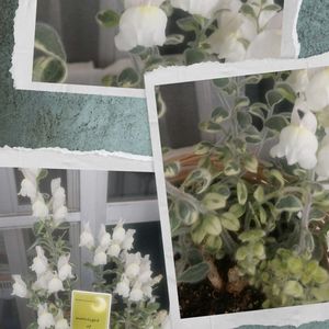 おはようございます プクプク純白のお花⇒春から秋 ふわふわ斑入りの葉っぱ⇒1年中 楽しめます 宿根金魚草 ムーンライト オブ トリニテイ 冬越し大成功です ベランダ スモール園芸 4号鉢