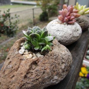 寄せ植えと。 100均の粉ふるいに色塗った鉢なので土の乾きが速い。 少し速すぎるくらいかも。 他の鉢とタイミングがズレる。 ツメレンゲ昭和。 もうすぐ平成終わっちゃうけど、平成て名前の多肉ないのかな〜?