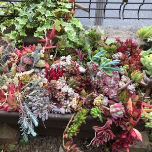 真ん中にコミックトム あとは名無しちゃんやらセダムをモリモリに。 最近置き場がないので吊り鉢ばかりの購入。 すのこラティスを作成中😁(進んでませんが💦)