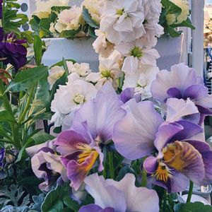 フリル咲きパンジー 🌸シエルブリエ🌸 毎年お迎えしていたシエルブリエですが、今回はご縁がなかったと思っていました。 最近値下げされていた苗を見つけてウキウキ💕 銅葉のおしゃれなロフォミルタス マジックドラゴンを入れてハンギングにしました😊💓