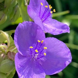 2枚目です(⋆ᴗ͈ˬᴗ͈)”ペコ ムラサキツユクサ💜✨ 5/2にツボミの投稿から ちょうど1週間 今朝咲いていました(*´艸`*)♡ このお花 蕊が大好きです💕