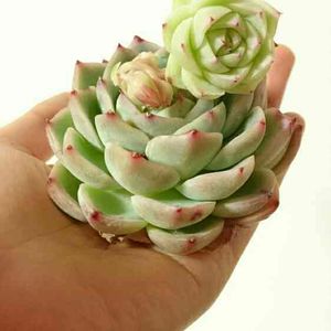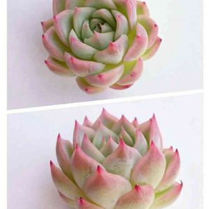 ↑ピンククリスタルローズ ↓クリスタルローズ すっかり成長期でピンクの色が抜けてしまいました💦 ピンククリスタルローズとクリスタルローズの違いが今一分からず、見比べるために、クリスタルローズも6個くらい持っています。 ↓のクリスタルローズは小さめが販売されていることが多いのですが、これは大きかったので違いを見るために狩ってみて、今は水やり過ぎてどかーんと開いています。 ここまですると比較的違いが分かりやすいです。 時々これは?!クリスタルローズでは?というのがフリマ等でピンククリスタルローズとして出ていて、(-_-;)うーん… ピンククリスタルローズキチとしてはこれは困る😅 余りに気になるとポチっと。 実際に見てみて、これはダメだろ! なのでうちに来たピンククリスタルローズもどきは、『なんちゃってピンククリスタルローズ』として区分しています。 鑑定士じゃないから自信はないけど💦 顔に個性があるのは理解してるんですが、私にとってピンククリスタルローズはこうであってほしい!ってのがあるので… まあけど、花屋さんなんかで、これなんですか?って聞いたら『エケベリアです!』… 『エケベリアの中の何なのかなーと思ってー』と聞くと 『勝手に農家さんが売れる名前を付けて区別してるだけなんで!』って💦 まぁ確かにね。 勝手に価値を付けているのは買う側で、自分が綺麗だと思えば安かろうが高かろうが、それに価値を感じるのだから。 高いから良いものだって保証はこの世界にはないですよね🌹 安くて可愛い💠これが一番!