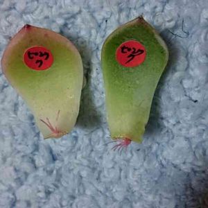 念願の♪ 自分でもぎったエケベリアの葉っぱ🌱から根が出始めました❤ なかなかでないので、もぎる葉が悪かったかな?とか環境が悪いのかな?とか色々と試行錯誤していました。 根が出て喜びの余り、本当にちょっとしか出ていないのに水をやって枯らしたり、色々とやらかしていますが、特美と勝手に名付けているピンククリスタルローズの葉からも出てきました。 緑っぽいピンククリスタルローズも出ているのですが、特美から出た喜びは🎶 焦らず、育てたいと思います🌹