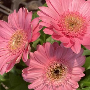 寄り道シリーズ🚙♪ ①②ガーベラさん二色 ③ミニシャクナゲ・レンさん ④オビトケノコンギク(帯解野紺菊)さん ⑤ユキノシタ・御所車さん (12/10、道の駅「藤川宿」にて撮影)