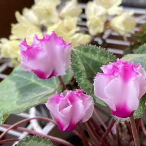 おうちシリーズ🏠 ①シクラメン・オリガミさん もうひとつ開花しました😊💗 ミニシャクナゲ・レンさんも、花数がさらに 増えました😊💛 ②ハツユキツユクサさん 昨年、ひろかちゃんから分けて頂いたものです✨ 手入れが悪いので、あまり綺麗でなく、お花にも なかなかお目にかかれませんが、今年も葉っぱに ピンク色の差し色が入り、とっても可愛いです😊💗💚 ③④⑤ 道路沿いの八重咲きチューリップさんも、可愛く咲きました🌷 主人が送ってくれました📲😊