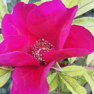 おはようございます🎵 快晴☀ 爽やかな朝に秋の訪れを感じます🍀 今日も良い1日になります様に。。。💓 バラ ベイシーズ パープル ローズ 1968年にアメリカで生まれた一重のローズさんです😌💓 このお色が一重のローズさんをより際立たせ、ハッとするほど美しく暫くここから動けなかった❤ 軽やかなのに吸い込まれそうな魅力のあるローズさんです😌💓 、