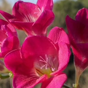 ᰔᩚ ᥫᩣ フリージア お天気回復してやっと開花Շ˝ན🩷 昨年は蕾で折れてしまい残念だったけど今年は綺麗に咲きました🙌🌸