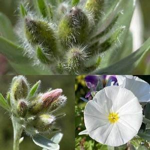 ᰔᩚ ᥫᩣ コバノランタナ白花 小さな蕾の投稿から1週間 リボン形の蕾が見えて一輪開花していました🤍ྀི ミヤマホタルカズラ やっと蕾が見えて少し膨らんできました💙ྀི
