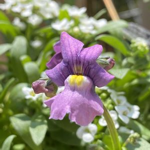 ᰔᩚ ᥫᩣ こぼれ種のネメシアさん 2輪開いてきました🙌💜💗 3週間前に迎えた花かんざし やっと開きそうだけど… どうかなぁ